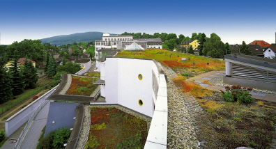 Vielseitige Gestaltungsmöglichkeiten Der Einsatz einer wasserdichten Dachhaut bietet eine Vielzahl von Gestaltungsvarianten. Bleibt sie als frei bewitterte Abdichtung sichtbar, bietet sie die Möglichkeit der farbigen Gestaltung durch die Verwendung von modernen farbigen Werkstoffen. Der Gestalter kann auf diese einfache und dauerhafte Weise wirkungsvolle Akzente setzen.