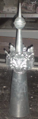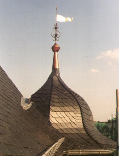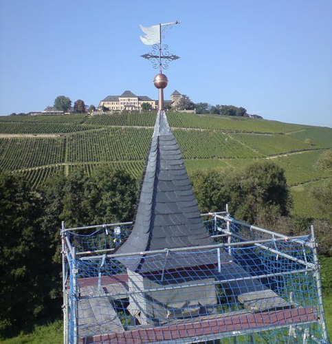 Eine Turmspitze, eins zu eins nach dem Vorbild der alten Spitze hergestellt.
