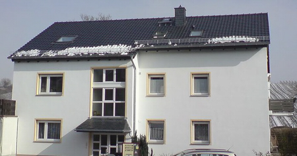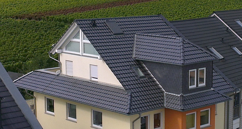 Ein Mehrfamilien Haus in Hattenheim gedeckt mit Tonziegel welche eine schwarzer Edelengobe haben