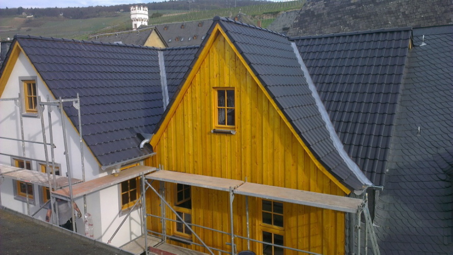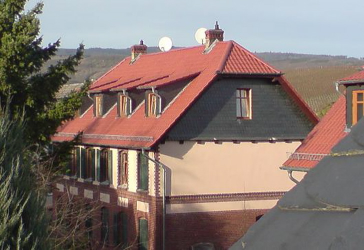 Saniertes Mehrfamilien Haus in Hattenheim. Gedeckt mit naturroten Dachziegeln