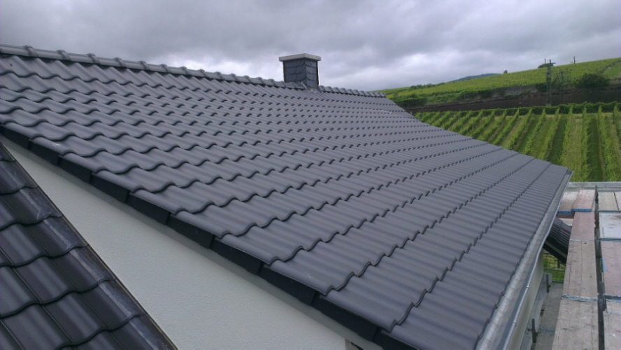 Das Dach eines Familienhauses in Hattenheim mit eleganten Grafitschwarzen Ton Ziegeln